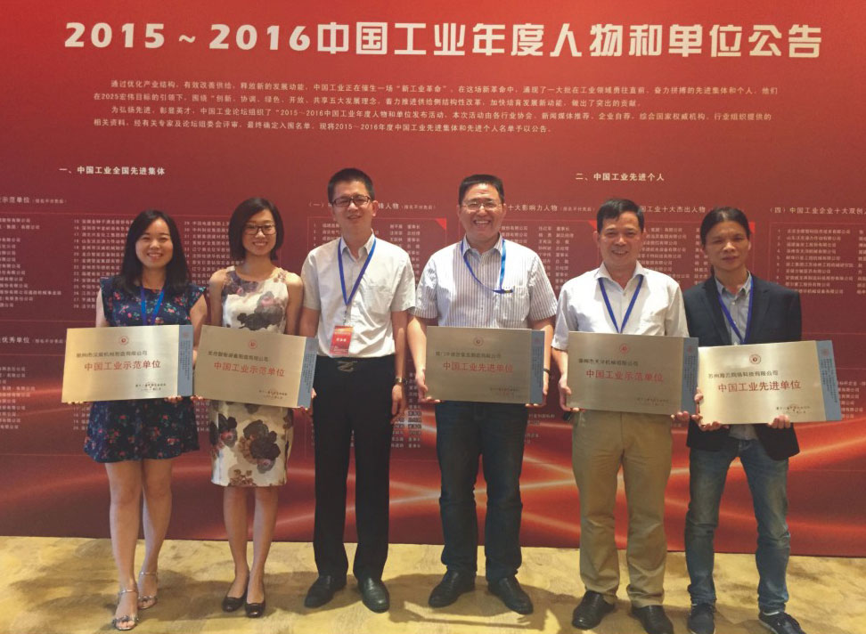2016年6月,在第十二屆中國工業(yè)論壇上,福建省工業(yè)文化協會秘書長陳良財(左三)與雷建強總經理等相關獲獎代表合影